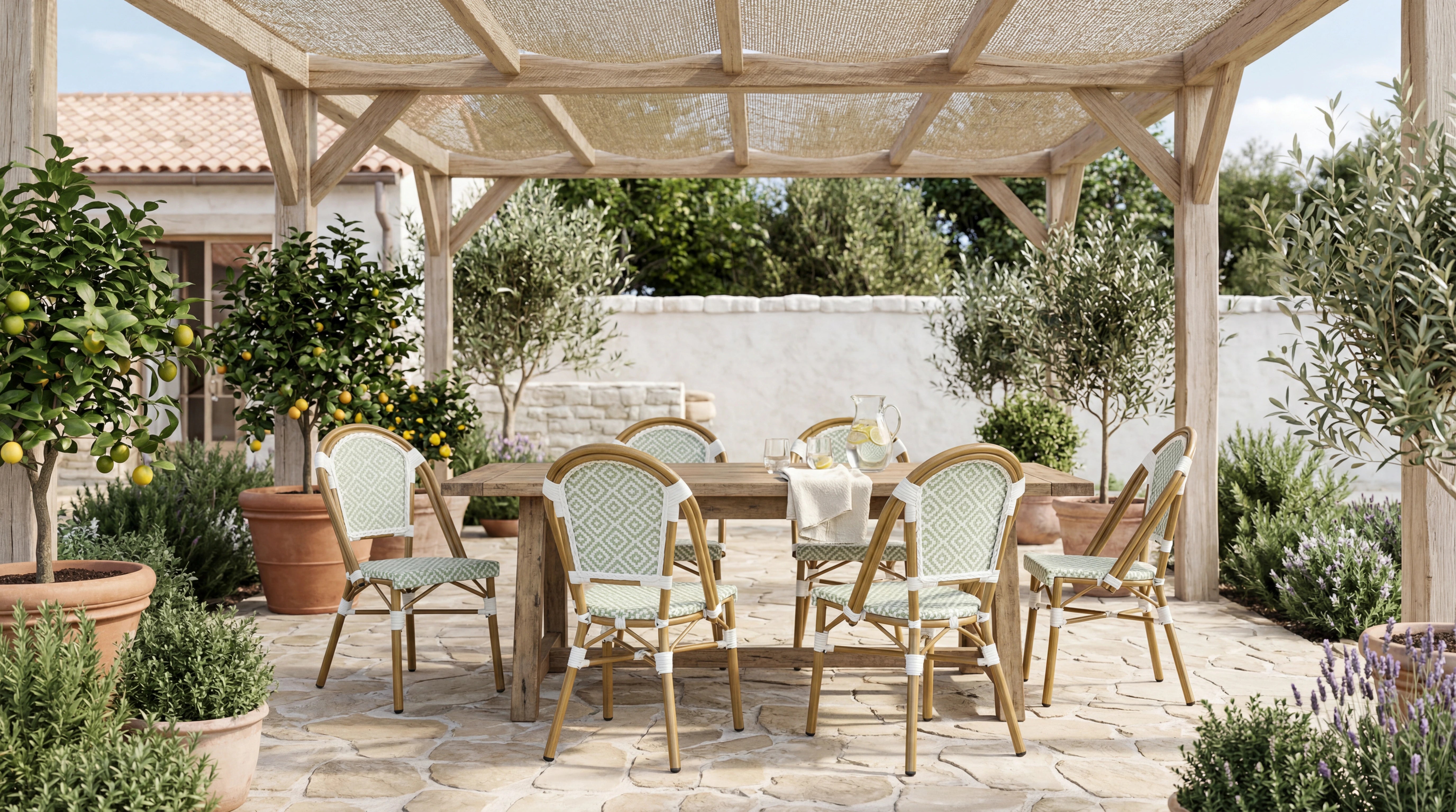 Tillandsia - Set 2 Sedie da giardino impilabili verde bianco classico